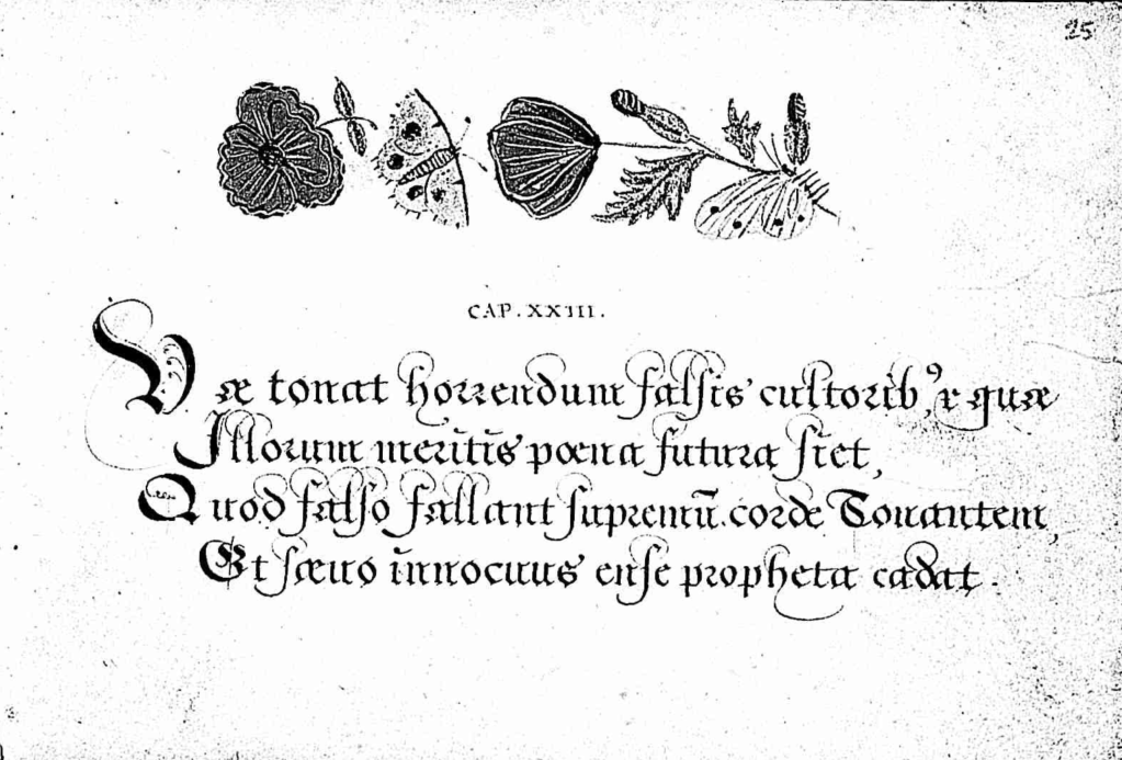 We can assume that Esther Inglis would have enjoyed their company as she festooned her own works with flowers and critters from the same kinds of engravings copied by artists such as Hoefnagel and van Kessel. See my Folger blog: “Buds, Bugs, and Birds in the Manuscripts of Esther Inglis.”